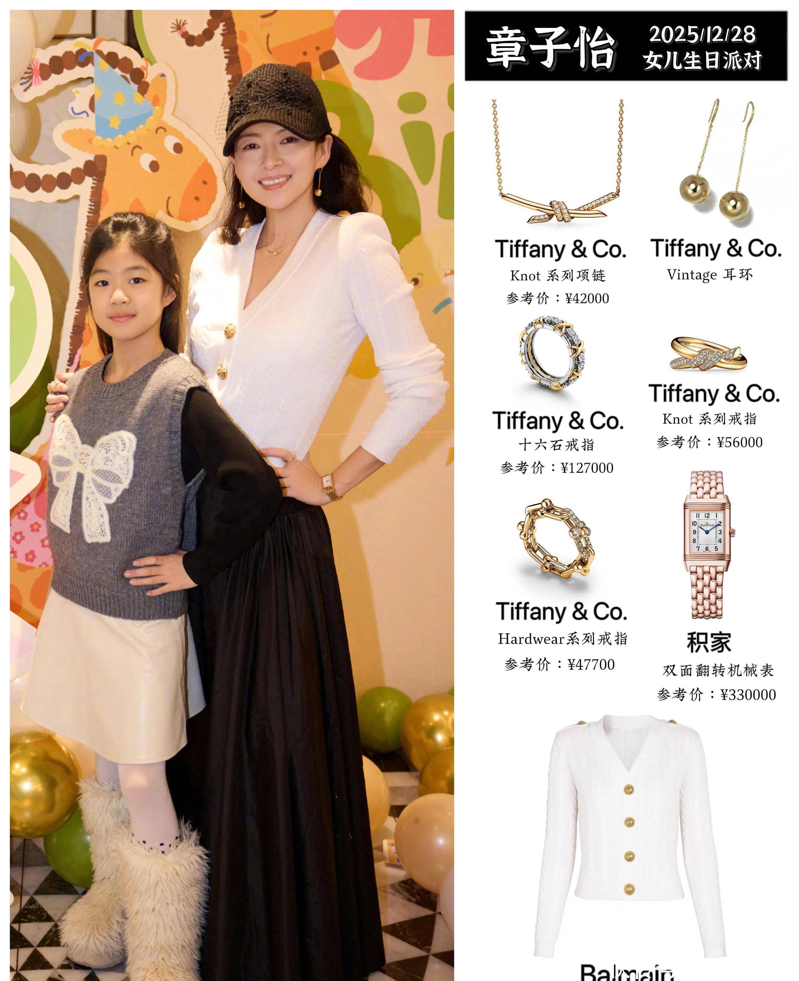 章子怡一身白Balmain开衫配黑长裙,手上Tiffany钻石首饰不抢戏却足够亮眼,腕间那块三十多万的积家表悄悄写着“我过得很好”。虽说离婚后独自带娃,但她的日子一点没将就,反而透着稳稳的精致。唯一有点违和的,是头顶那顶黑色蕾丝针织帽——跟整身贵气不太搭,略显土气,网友都说“摘了更美”。